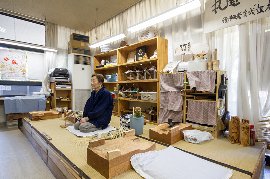 25年前にオープンしたうちわ工房「竹」。今では多くの観光客が訪れ、うちわに触れられる場になっている。「すべて丸亀のものを使いたい」と、シーズンオフには自ら竹を取りに行くという三谷さん。素材も技術も地元に根差したうちわは、これからも丸亀の地から全国、世界に広がっていく。