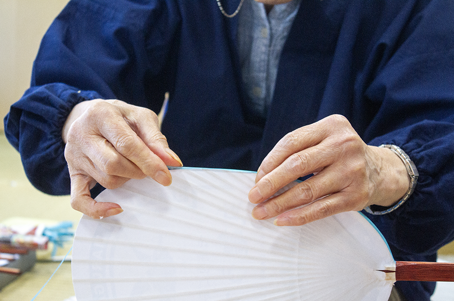 先生方から教えていただいたことは、今でも心に残っています。骨の工程は冨羽先生に、貼りの工程は早川先生に教えてもらいました。道具の扱い方やものづくりへの姿勢など、うちわづくりの基本を一から学びました。特に「早い工程で無駄のない仕事をすること」「お客様に手に取ってもらえる、いいものをつくること」という言葉は、骨を作るときに、貼るときにいつも思い出しますね。