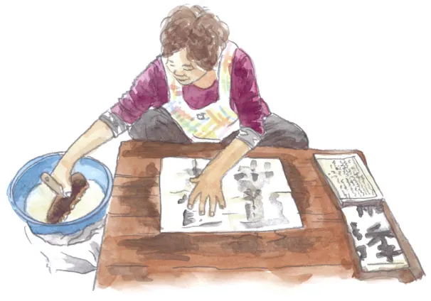独特な形状と表情で愛される張⼦⻁。糊で貼り合わせた和紙を木型に何重にも貼ることで、軽量で丈夫に仕上がります。